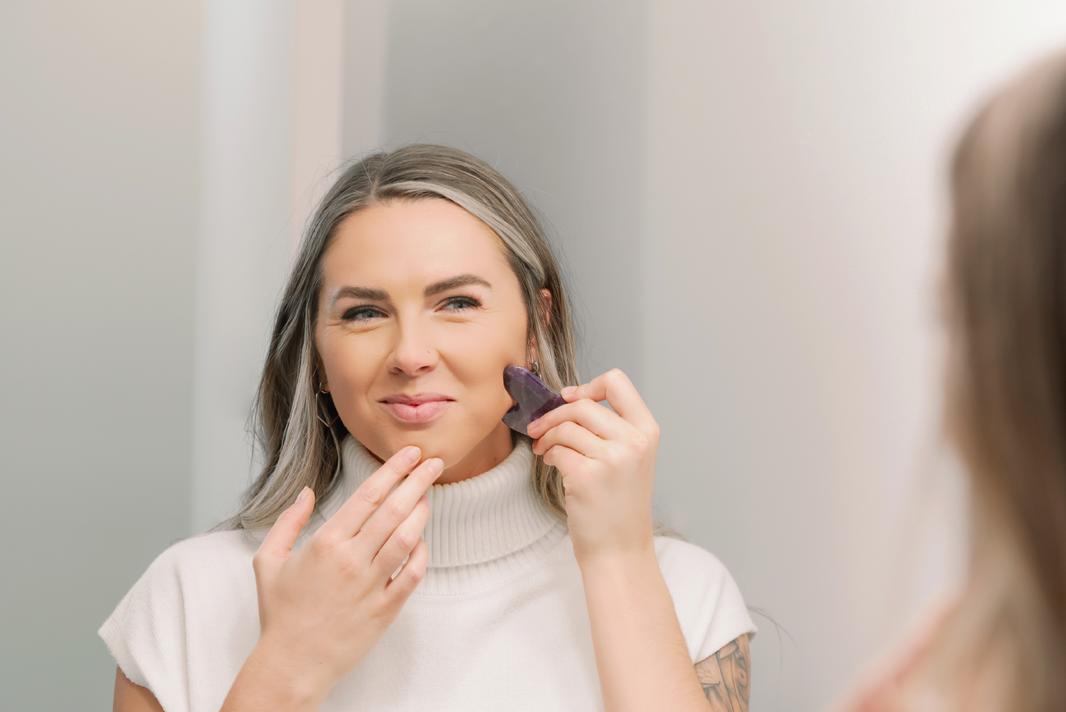 Guasha is used to address stagnated energy in the body, which can be responsible for inflammation and pain. It can be used on areas of the body like the arms, legs, back, and neck, or even gently on the face.